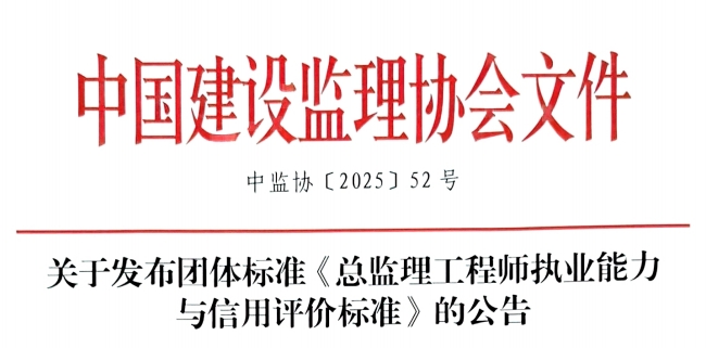 關于發布團體標準《總監理工程師執業能力與信用評價標準》的公告