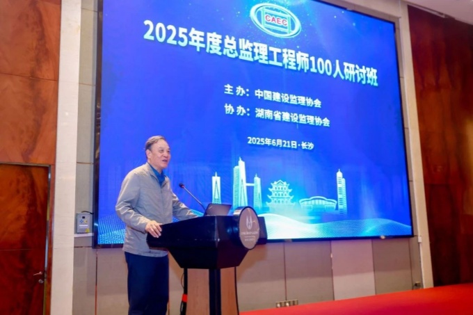 為全面貫徹落實黨的二十屆三中全會精神,助力實施人才強國戰略,加強總監理工程師隊伍建設,2025年6月21日,由中國建設監理協會主辦,湖南省建設監理協會協辦的“2025年度總監理工程師100人研討班(1期)”在湖南長沙成功舉辦。中國建設監理協會會長王早生,副會長兼秘書長、中國工程監理大師李明安,北京交通大學教授劉伊生,中國工程監理大師李偉、楊衛東、龔花強,湖南省建設監理協會常務副會長兼秘書長田英,湖南大學教授陳大川,浙江工程建設管理有限公司總工程師丁繼財,以及來自全國各地的工程監理企業總監理工程師100余人參加了本次研討班。