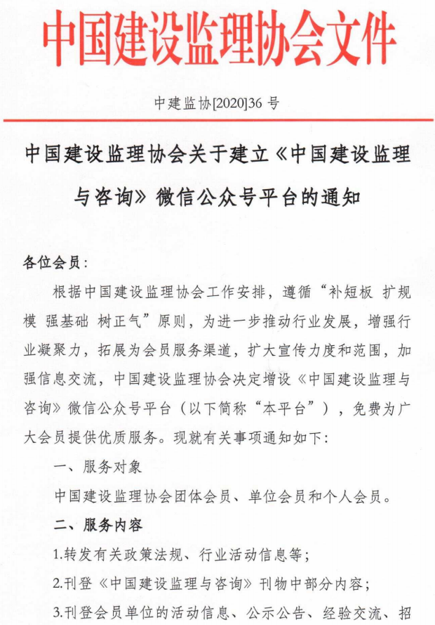 中國建設監理協會關于建立《中國建設監理與咨詢》微信公眾號平臺的通知