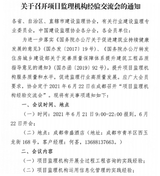 關(guān)于召開(kāi)項(xiàng)目監(jiān)理機(jī)構(gòu)經(jīng)驗(yàn)交流會(huì)的通知