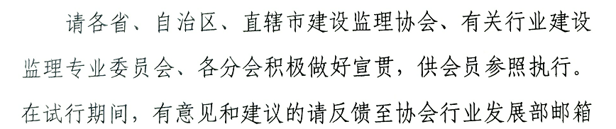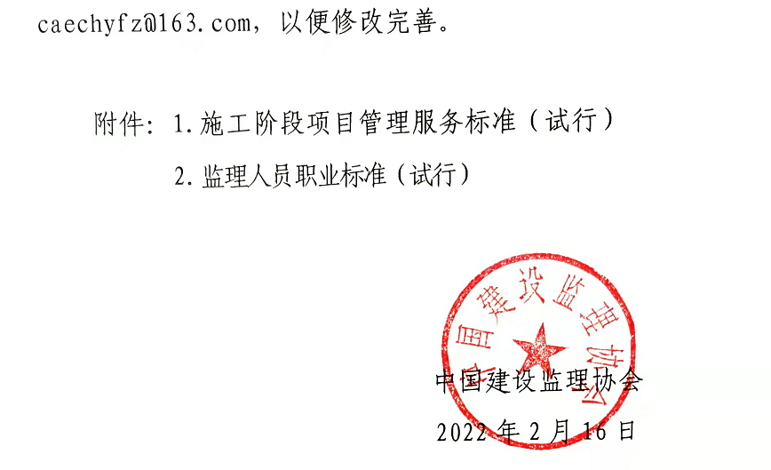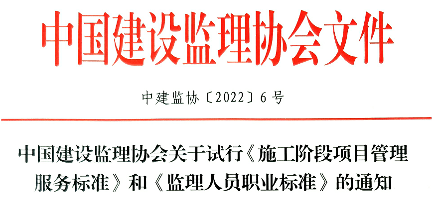 中國建設監理協會關于試行《施工階段項目管理服務標準》和《監理人員職業標準》的通知