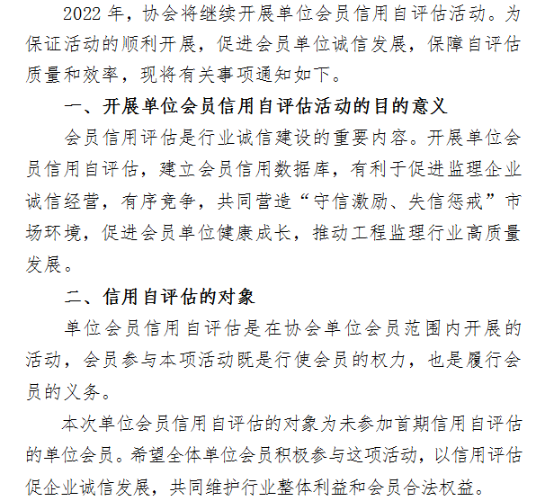 關(guān)于繼續(xù)開展單位會員信用自評估活動的通知