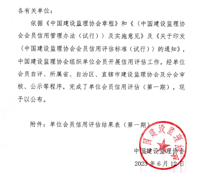 附件: 中國建設監理協會關于公布單位會員信用評估結果(第一期)的通告