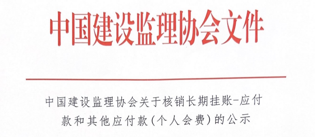 中國建設監理協會關于核銷長期掛賬—應付款和其他應付款(個人會費)的公示