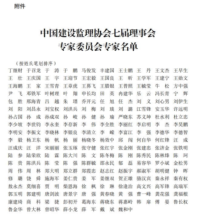 關于公布中國建設監理協會七屆理事會專家委員會專家名單的通知