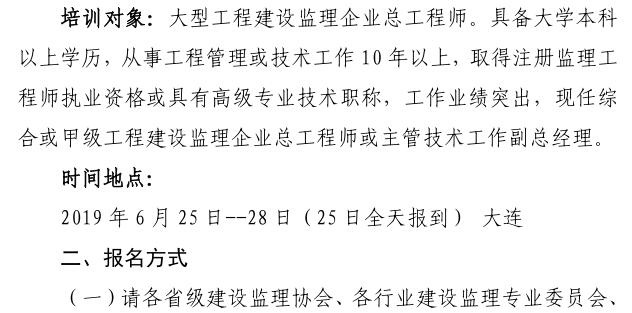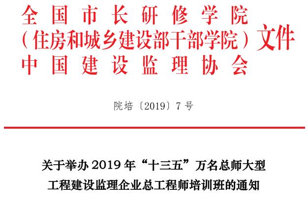 關于舉辦2019年“十三五”萬名總師大型監理企業總工程師培訓班的通知