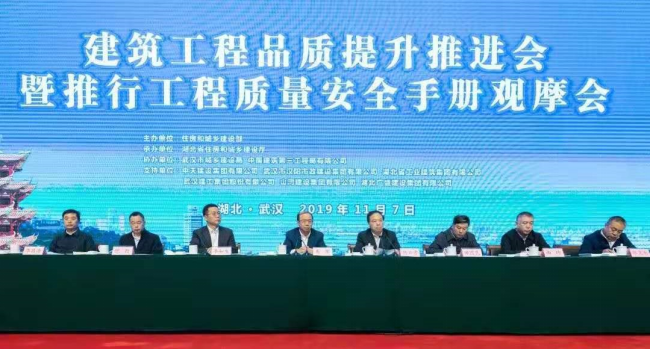 為深入開展工程質量安全提升行動,規范企業質量安全行為,落實企業主體責任,完善企業質量安全保障體系,提高人民群眾滿意度,推動建筑業高質量發展。2019年11月7日,全國建筑工程品質提升推進會暨推行《工程質量安全手冊》(以下簡稱:《手冊》)觀摩會如期在武漢中建工程管理有限公司(以下簡稱:中建管理公司)監理的中建鉑公館項目成功召開。來自住建部、全國各省、市、區150余名領導代表參加,住建部副部長易軍和湖北省副省長楊云彥,中建三局董事長陳華元等應邀出席。