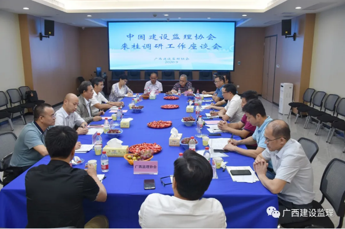 2020年9月22日下午,借全國建設監理協會秘書長工作會議在廣西南寧舉辦之機,中國建設監理協會會長王早生率領副會長兼秘書長王學軍、副秘書長王月等一行4人深入調研,在廣西城建咨詢有限公司召開廣西工程監理行業調研工作座談會,了解廣西監理企業現狀,探討廣西工程監理行業發展道路。座談會由本會會長陳群毓主持,本會部分副會長、秘書長、副秘書長,南寧、柳州、桂林市企業代表,交通、水利、電力行業企業代表參加了會議。