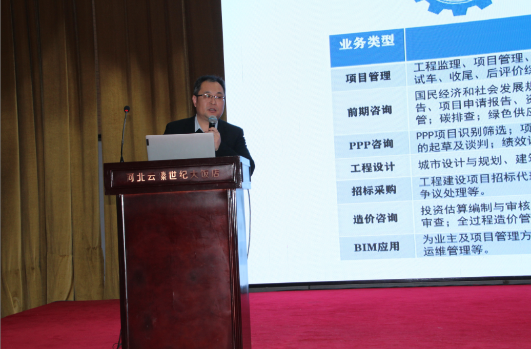 河北中原工程項目管理有限公司副經(jīng)理徐榮香作了題為《新引擎 · 新技術 · 新發(fā)展》的經(jīng)驗交流,分別從公司綜合業(yè)務系統(tǒng)建設、BIM技術應用、項目全咨平臺研發(fā)三個方面進行了詳細闡述。