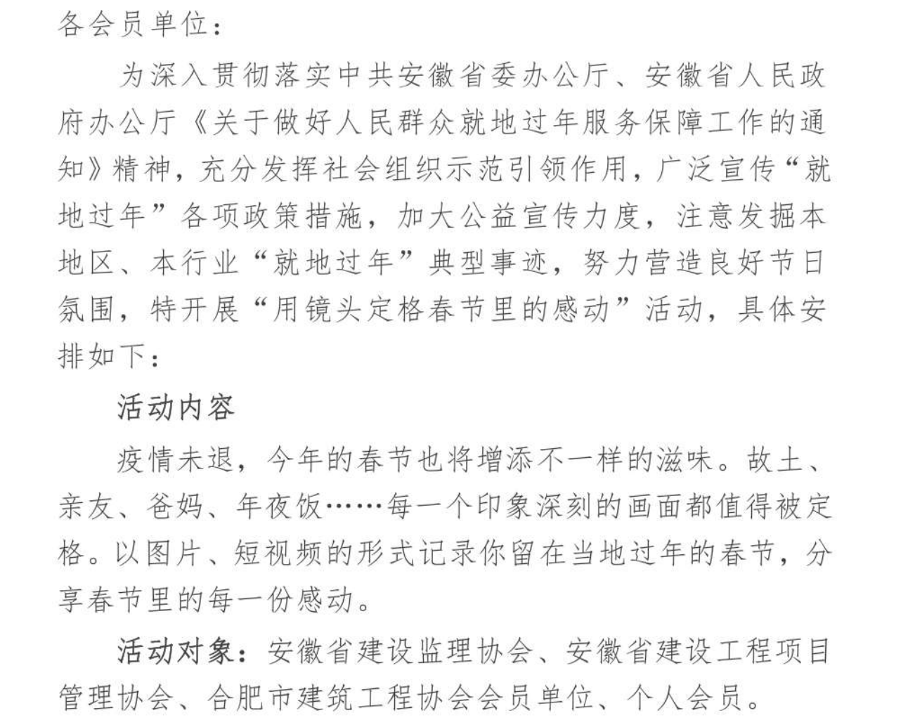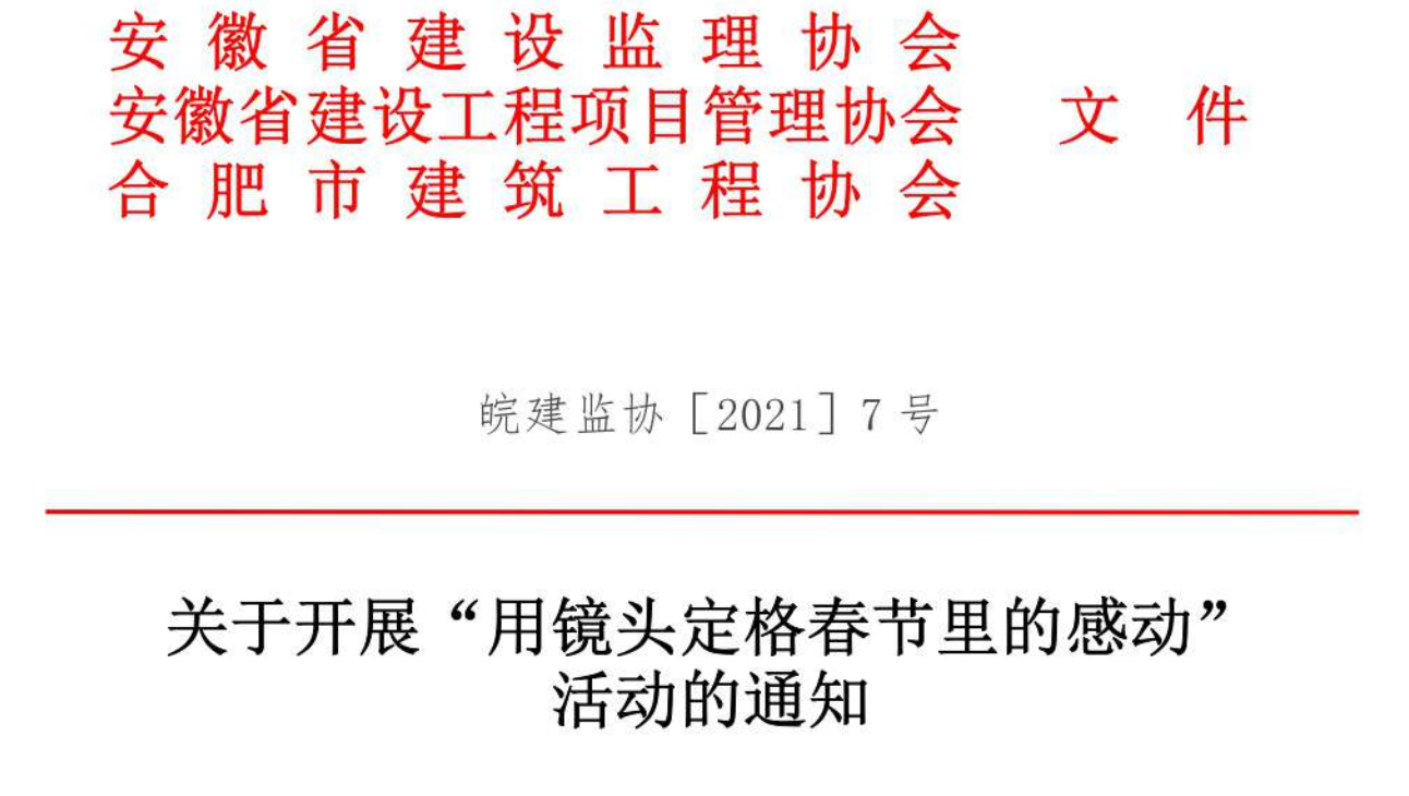 安徽省建設(shè)監(jiān)理協(xié)會關(guān)于開展關(guān)于開展“用鏡頭定格春節(jié)里的感動”活動的通知