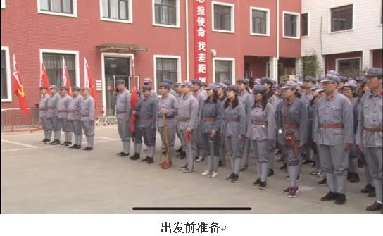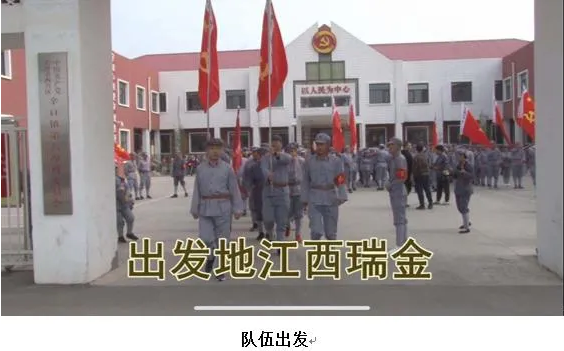 早上9點,全員集結,在清晨的陽光下,五星紅旗冉冉升起,全員面對黨旗重溫入黨誓詞,隨后“紅一方面軍”接過“軍首長”授予的隊旗,“重走長征路”熱烈開場。
