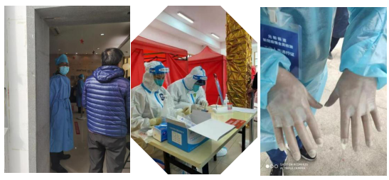 核酸檢測服務 志愿者中,絕大部分是作為核酸檢測采樣點位“二碼”檢查、信息錄入、材料運送、秩序維護等,大部分此類工作往往由年輕美麗的姑娘志愿者來完成,雖然隔著霧氣迷蒙的面罩,但她們以青春熱情的身姿、溫婉燦爛的笑容,與醫護、社區、政府機關的抗擊工作者一起,驅散了疫霾的憂緒和恐慌、遏制了疫情邊界的擴溢。2月中旬,蘇州的天氣陰冷潮濕,尤其是凌晨時分,時有冷雨小雪,穿上脫卸比較麻煩的防護服,忙得身上大汗淋漓,志愿者們往往無暇顧及喝水吃飯,而雙手因為薄薄的手套或者一次又一次的洗手消毒而凍得僵硬紅腫。但志愿者們沒有一個有怨言的,他們以苦為樂彼此守望,全身心戰斗在核酸檢測的第一線。