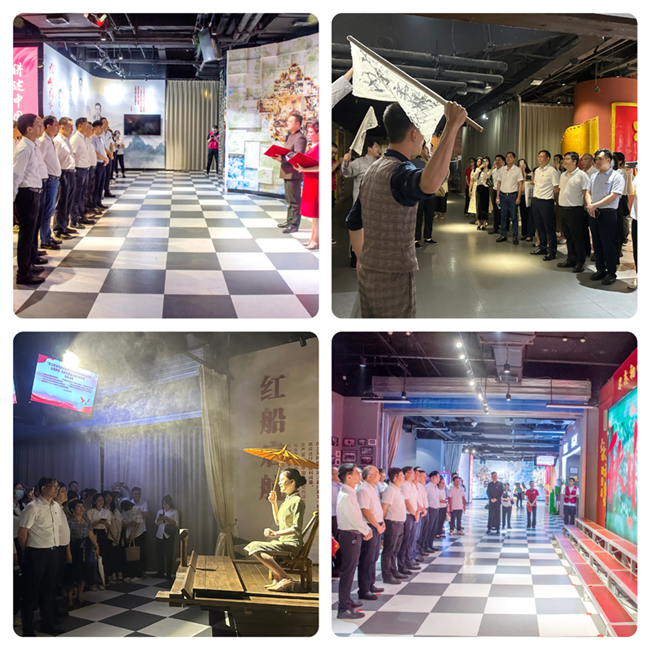 接下來,大家在南寧經濟技術開發區兩新領域電影黨校書記劉軍的帶領下體驗沉浸式課堂《紅》。《紅》通過戲劇院的表現手法,將《我愛你,中國!》 《五四精神》 《紅船之上》 《江姐》等實景沉浸式演出,重現百年前波瀾壯闊的歷史,讓參加黨員置身于從救國到新中國成立再到強國的偉大歷史征程之中。通過身臨其境的觀看體驗,現場黨員熱血澎湃,革命生生不息的精神打動著在場的每一個人。隨后,大家滿懷著激動的心情合唱歌曲《我和我的祖國》,表達對偉大祖國的熱愛之情。