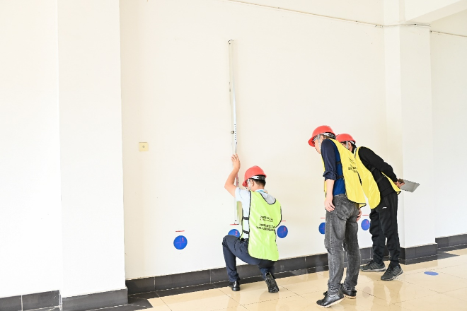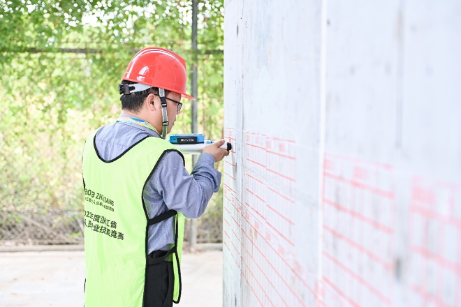 理論考試按照相關法律法規、新版通用規范、《建筑施工安全管理規范》《建設工程監理工作標準》《浙江省住宅工程質量通病防治標準》《浙江省預拌混凝土質量控制標準》等內容為主進行命題,同時增加黨建知識題、中國傳統建筑文化題及亞運會主題的相關題目,全面檢測了監理從業人員的綜合理論知識水平。實踐操作重點考核操作技能和解決實際問題的能力,又包括回彈儀檢測混凝土強度、水準儀高程測量、工程實體實測實量、監理方案陳述四小項。