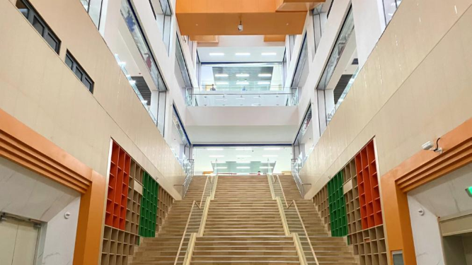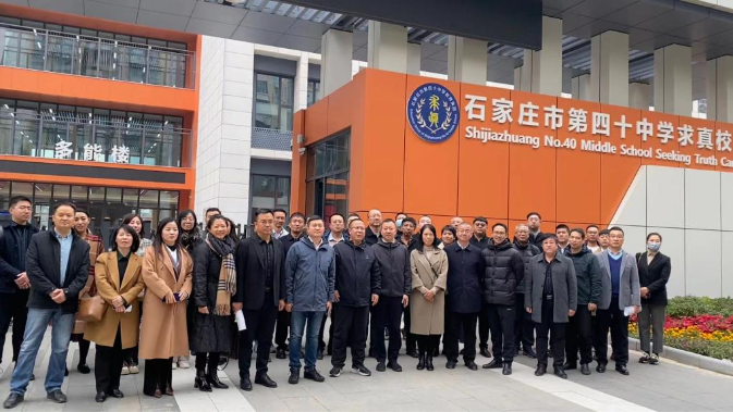 座談會結束后,參加活動人員乘車來到石家莊市第四十中學新校區項目現場,項目總負責人彭俊祥為大家介紹了該項目的投資、工期、質量、安全、成本控制等情況,并帶領大家參觀了石家莊市第四十中學新校區智慧校園的建設情況。