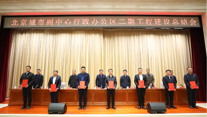 按照議程,組織全體人員觀看了行政辦公區二期工程建設專題片,城市副中心領導為行政辦公區建設者代表頒發了“行政辦公區工程建設紀念證書”。這是對參建單位辛勤付出和卓越貢獻的充分肯定。