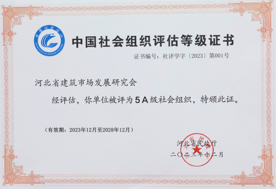 2023年12月29日,河北省民政廳公布2023年度社會組織評估等級結果,河北省建筑市場發展研究會獲評為5A級社會組織。