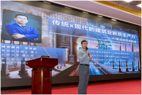 進入主題演講環節,本次論壇特邀模馭人工智能科技(上海)有限公司聯合創始人兼CEO李澤涵博士從AI領域對新質生產力進行解讀,李博士以《建筑業新質生產力:傳統與現代的交織—AI驅動范式轉換》為題,結合個人在人工智能領域的豐富經驗和研究成果,深入剖析了新質生產力在工程咨詢行業的應用前景,為與會者帶來了深刻的啟發。