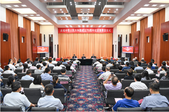 9月18日上午,住房和城鄉建設部隆重舉行“慶祝中華人民共和國成立70周年”紀念章頒發儀式,98名同志榮獲紀念章。部黨組成員、副部長倪虹為獲得紀念章的代表頒發紀念章并講話,部直屬機關各單位負責同志和干部職工代表參加頒發儀式。