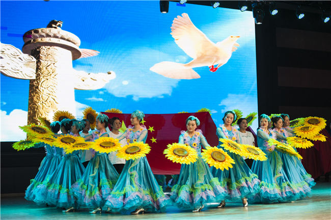 最后,全體人員起立齊聲高唱“歌唱祖國”,慶祝中華人民共和國成立70周年文藝匯演在歡樂祥和的氣氛中結(jié)束,取得圓滿成功。