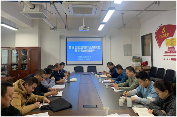 新疆建設監(jiān)理協(xié)會積極響應中監(jiān)協(xié)〔2024〕79號通知要求,于2024年11月12日至13日,組織參加首屆全國工程監(jiān)理行業(yè)知識競賽的21名參賽人員開展業(yè)務培訓輔導活動。