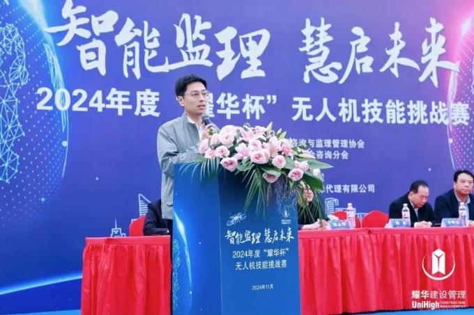 鄭志鋒代表杭州市臨平區住房和城鄉建設局對各位領導、嘉賓、參賽選手的到來表示熱烈歡迎。他指出,在住房和城鄉建設領域,“數字住建”正加速推進人工智能、物聯網、區塊鏈等技術深度融合應用;無人機、BIM 技術等智能化、數字化手段已廣泛運用于工程監理和全過程工程咨詢領域。他認為此次無人機技能大賽契合監理咨詢行業的發展需求,同時祝愿所有參賽選手賽出水平、賽出風格,彼此學習、共同提升技術水平。
