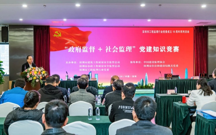 2025年12月26日,由深圳市建設工程質量安全監督總站、深圳市市政工程質量安全監督總站、深圳市工程監理行業黨委聯合主辦的“政府監督+社會監理”主題黨建知識競賽活動圓滿落幕。中國建設監理協會副會長兼秘書長、中國工程監理大師李明安,深圳市住房和建設局機關黨委專職副書記張雁,廣東省建設監理協會及武漢、成都、哈爾濱、福州等兄弟城市協會同仁齊聚賽場,共襄活動盛況。
