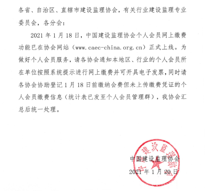 關于開通中國建設監理協會個人會員網上繳費有關事項的通知