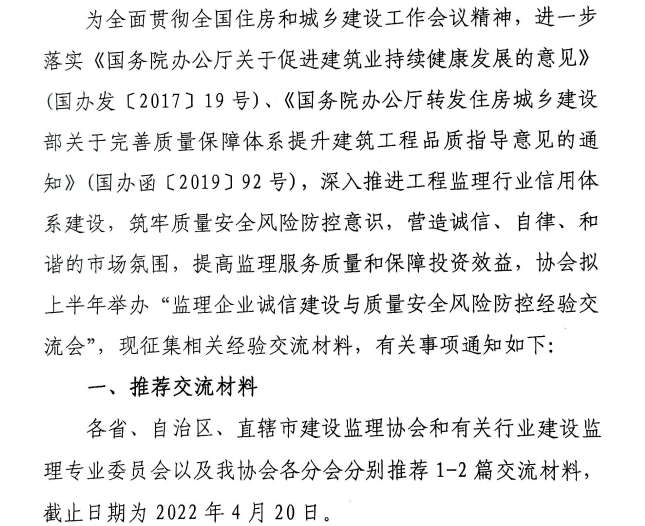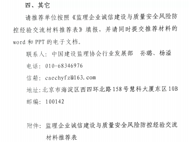 附件:監理企業誠信建設與質量安全風險防控經驗交流材料推薦表