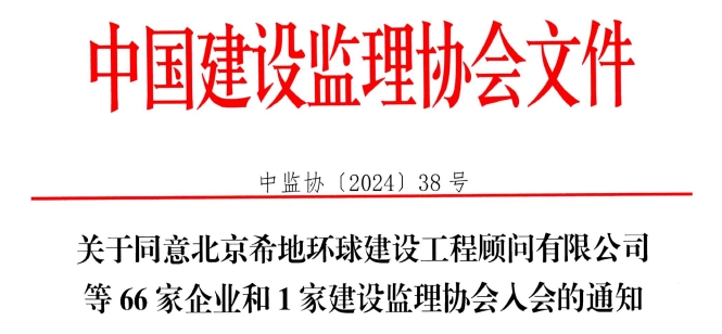 關于同意北京希地環(huán)球建設工程顧問有限公司等66家企業(yè)和1家建設監(jiān)理協(xié)會入會的通知