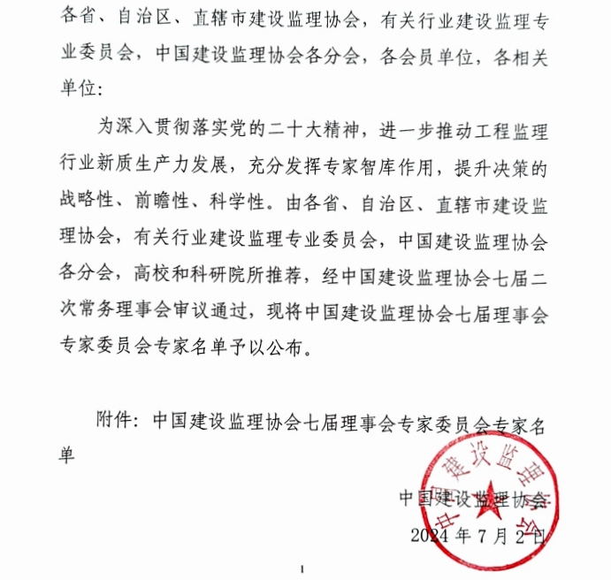 關于公布中國建設監理協會七屆理事會專家委員會專家名單的通知