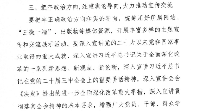 關于深入學習宣傳貫徹黨的二十屆三中全會精神的通知