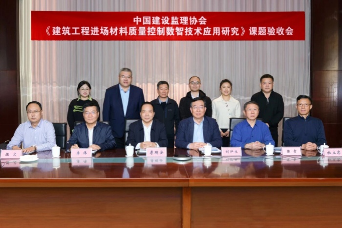 2025年12月6日,中國建設監理協會“建筑工程進場材料質量控制數智技術應用研究”課題結題驗收會在連云港市召開。中國建設監理協會副會長兼秘書長、中國工程監理大師李明安,副會長、專家委員會常務副主任、北京交通大學劉伊生教授,專家委員會副主任、中國工程監理大師李偉,專家委員會委員陳貴、杜立忠等領導和專家出席會議并參與結題驗收,課題組26名成員線上線下參加會議。會議由中國建設監理協會副會長兼秘書長、中國工程監理大師李明安主持。經推薦,由劉伊生教授擔任結題驗收組組長。
