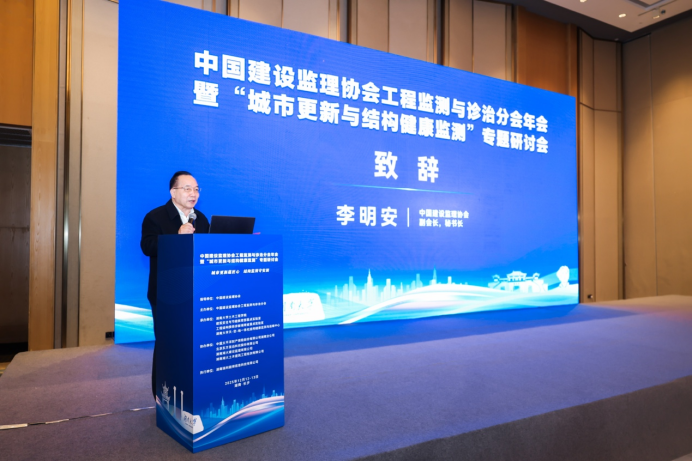 中國建設監理協會副會長兼秘書長、中國工程監理大師李明安在致辭中指出,工程監測與診治分會自 2024 年成立以來,圍繞行業發展需求,積極搭建交流平臺,本次研討會以“城市更新與結構健康監測”為主題,匯聚國內該領域的頂尖智慧與實踐經驗。這正是積極響應國家戰略部署,主動探索行業融合發展的具體體現,可謂恰逢其時,意義深遠。并就分會及行業發展提出4點建議:一是聚焦技術前沿與創新,二是聚焦標準編制與政策建議,三是聚焦典型項目與實踐落地,四是聚焦學科融合與協同創新。